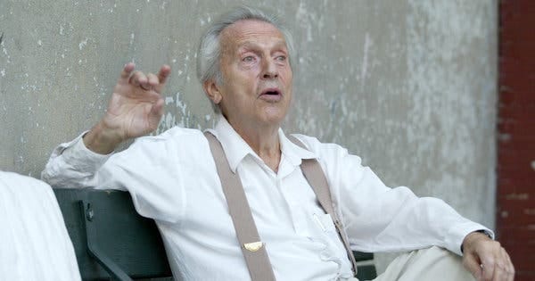 Menashe sitting on a bench in his neighborhood, Greenwich Village, in 2003.