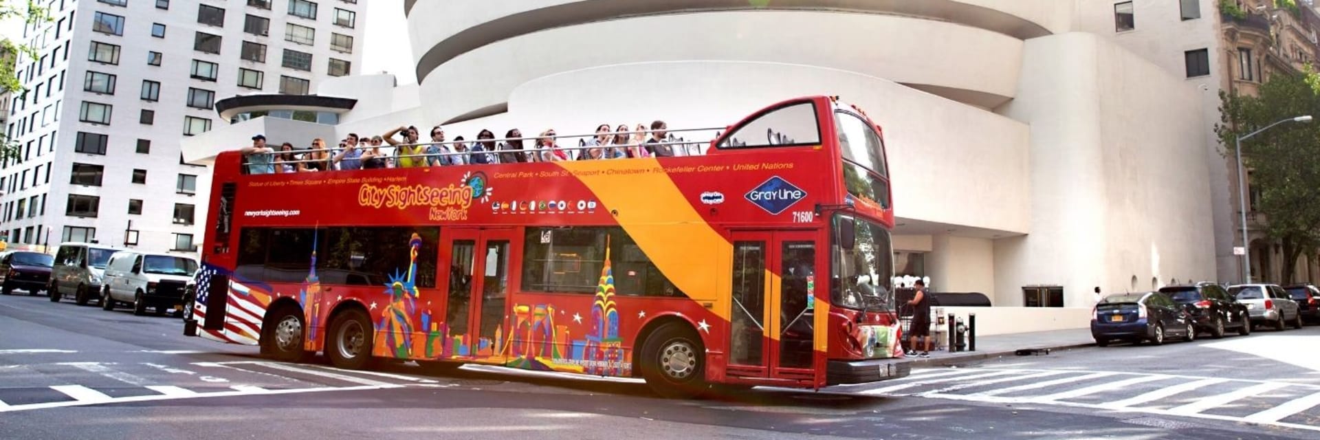 Gray Line bus, doing its rounds in New York. Here, it’s passing the Guggenheim Museum.